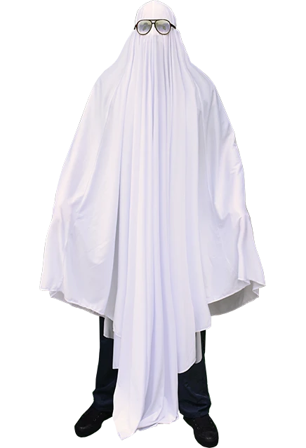 This costume comes with a perfectly draped Ghost Sheet with reinforced eyes cuts that lineup perfectly with the wearers eye, as well as glasses that are just like the glasses worn by Bob. In addition, the glasses comes with a glasses cord that attaches to both sides so that the glasses stay firmly attached to the wearers head.